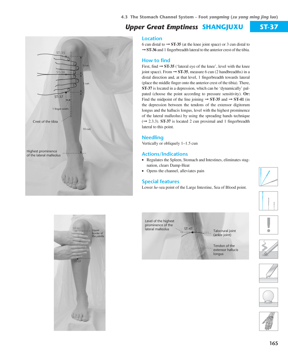 i. Perpendicular insertion 0.5 cun; ii. Transverse insertion